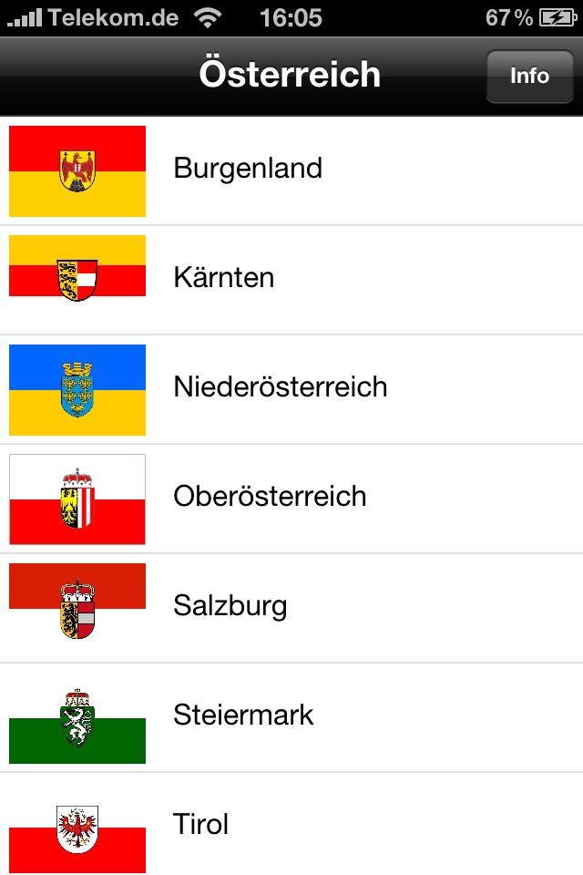 Die Info Seite zeigt zu jedem Bundesland Folgende Informationen:
