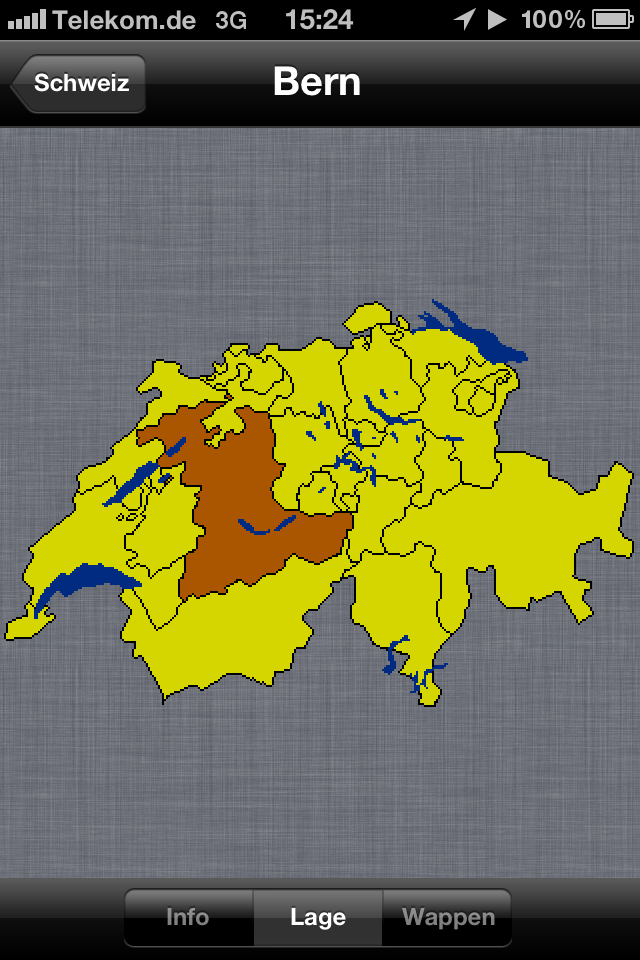 Die Info Seite zeigt zu jedem Kanton Folgende Informationen: